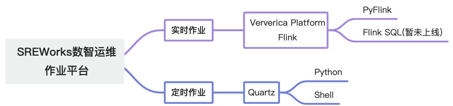 在SREWorks刚开源的一段时间里,因为SREWorks中包含了社区版的Ververica Platform来管理Flink Job,有段时间,社区版vvp的使用答疑居然占据了我们大部分和用户沟通时间。于是经过这些需求的沉淀和打磨,我们将实时处理链路也集成到作业平台中,作业平台中的作业分为定时作业 和 实时作业: