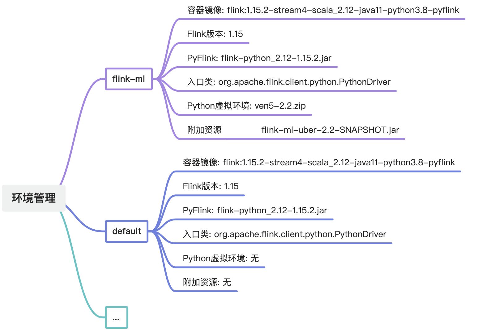 当前v1.5提供两个环境可用:flink-ml 和 default,环境的自主管理能力会在下个版本上线。