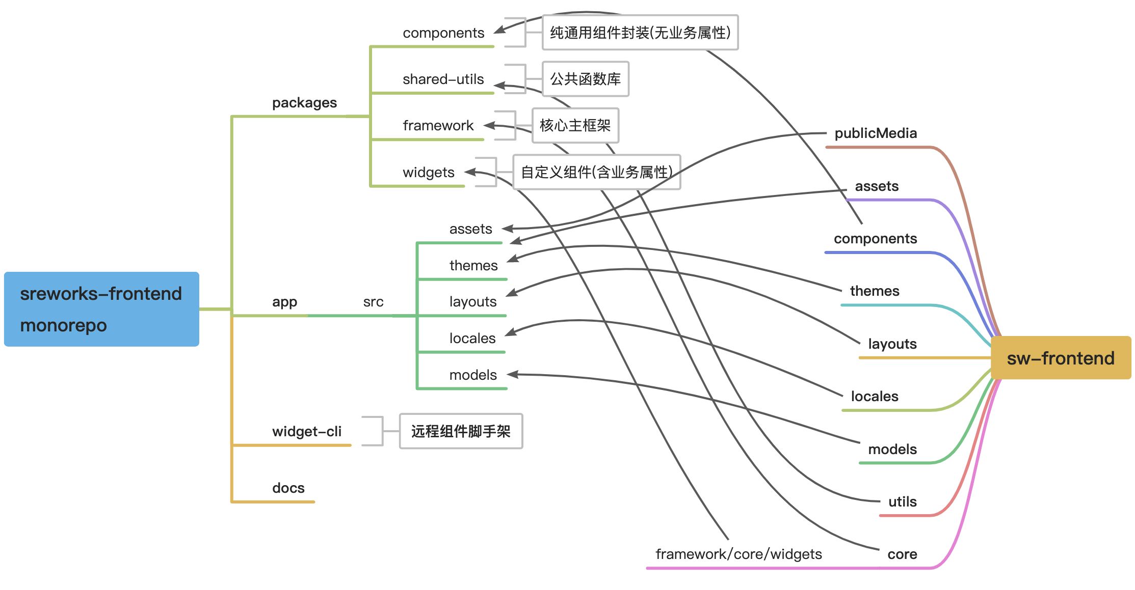 前端工程部分(frontend),为了团队更加敏捷高效的协作开发,及便于社区开发者参与共建sreworks前端组件生态,对工程架构重新梳理拆分,进行了Monorepo模式架构演进; 同时对工程构建工具及配置进行了优化升级。